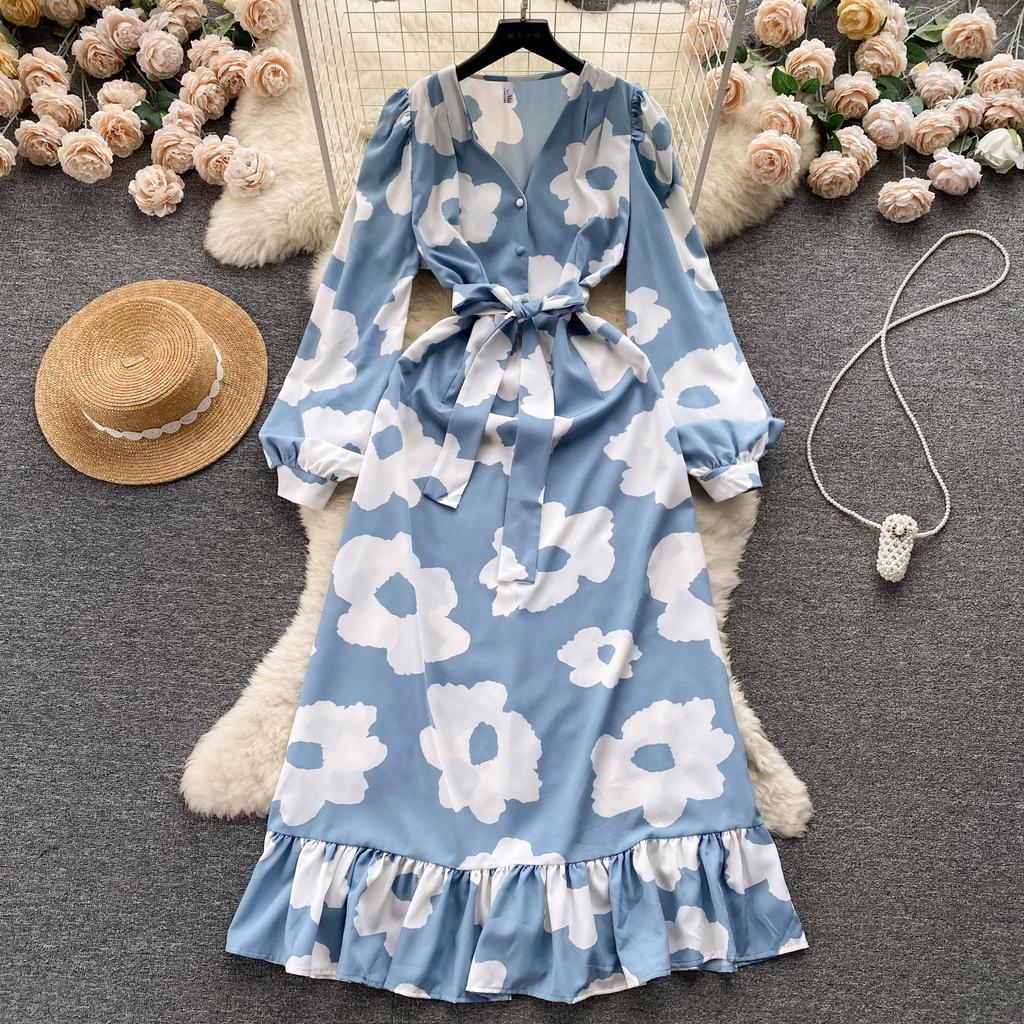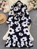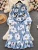 Fashion Flower Print Γυναικείο Φόρεμα Φθινοπωρινό Κομψό Vintage Επίδεσμος Μακρύ μάξι Φόρεμα με βολάν πάρτι Vestidos