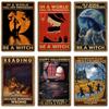 Dark Black Cat Witch Living Here Retro Decoration Poster Black Cat Association Wall Painting Decoration