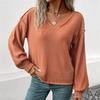 YYFS Γυναικεία μόδα casual μονόχρωμα φθινοπωρινά χειμερινά μακρυμάνικα πουλόβερ με λαιμόκοψη V