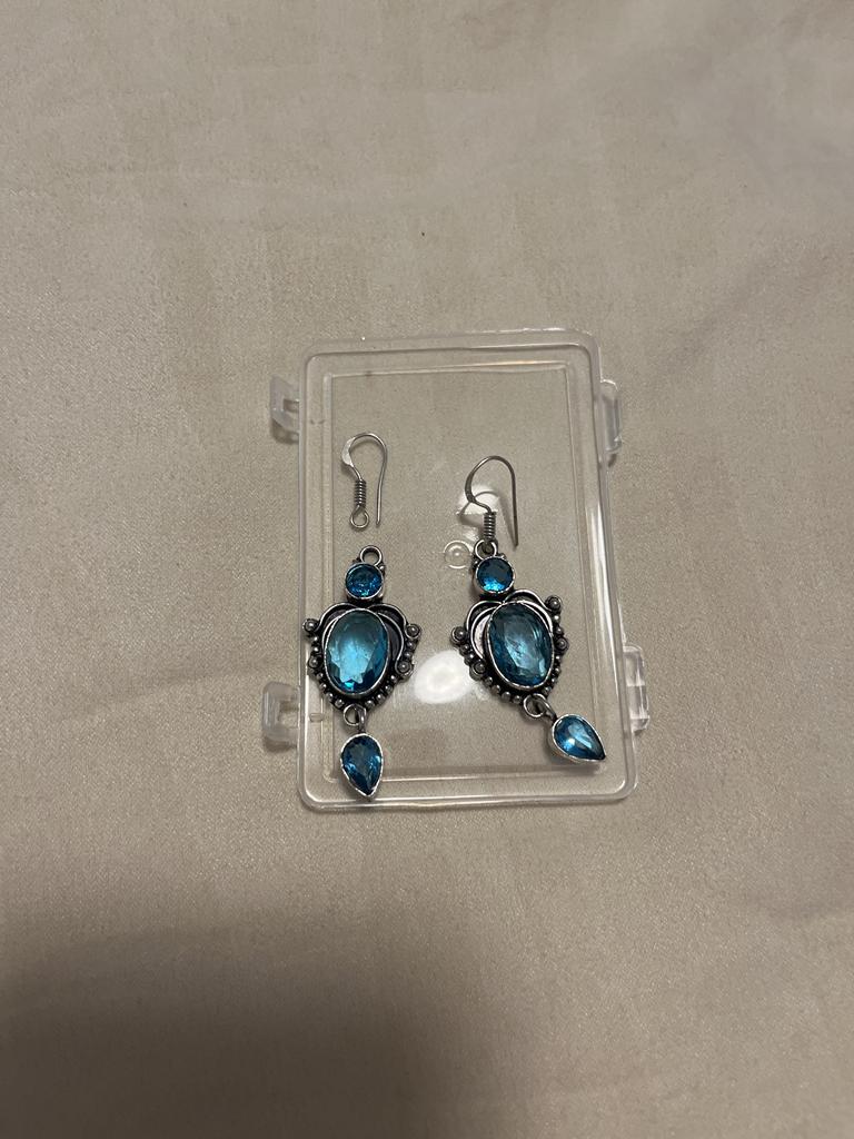 Swiss Blue Topaz, πολύτιμος λίθος από ασήμι 925 χειροποίητο πανέμορφο σκουλαρίκι κοσμήματος