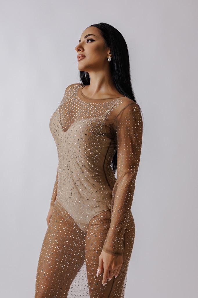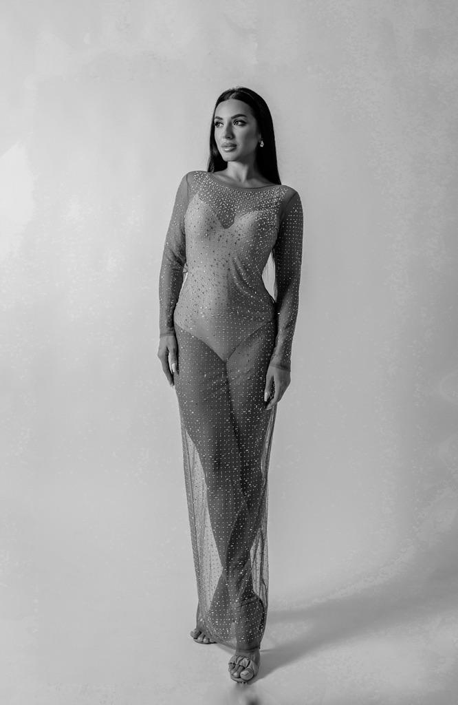 Διαφανές φόρεμα από κρύσταλλο πλέγμα για γυναίκες Δαντελένιο μάξι φόρεμα με μακρυμάνικο λεπτό σέξι φόρεμα παραλίας με κάλυψη