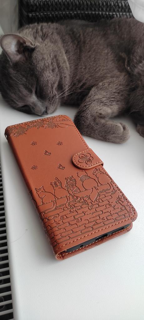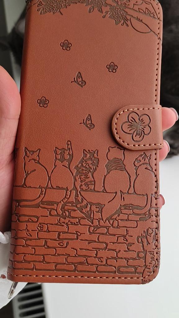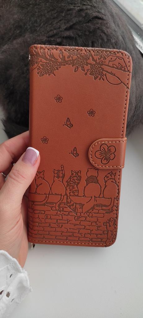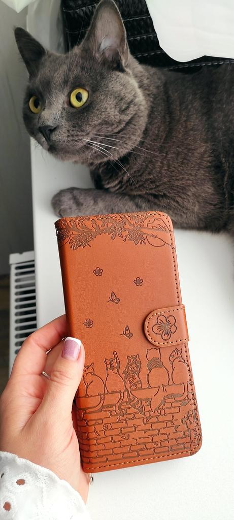 Phone case with cats. Convenient and practical. Fastens with a magnet. There is a string so that it can be worn on the arm. Inside there are compartments for cards, business cards or money. This case will protect your phone from damage. My whole family uses only these phone cases.