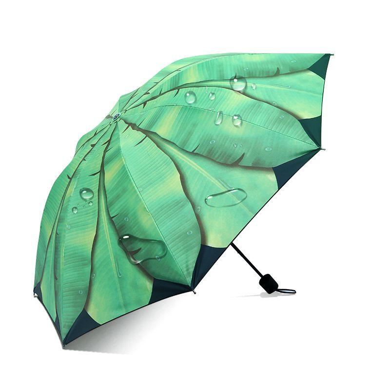 Green Ins Rain and Rain Ομπρέλα ηλίου διπλής χρήσης Γυναικεία ομπρέλα με προστασία από υπεριώδη ακτινοβολία βινυλίου Ιαπωνική ομπρέλα με φύλλα μπανάνας Νέα ρετρό ομπρέλα