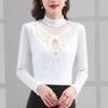 Φθινοπωρινό χειμερινό καινούργιο μπλουζάκι με δαντέλα Διχτυωτό πουκάμισο με μισό ψηλό γιακά για γυναίκες με μακρυμάνικο πουλόβερ Top M-5XL
