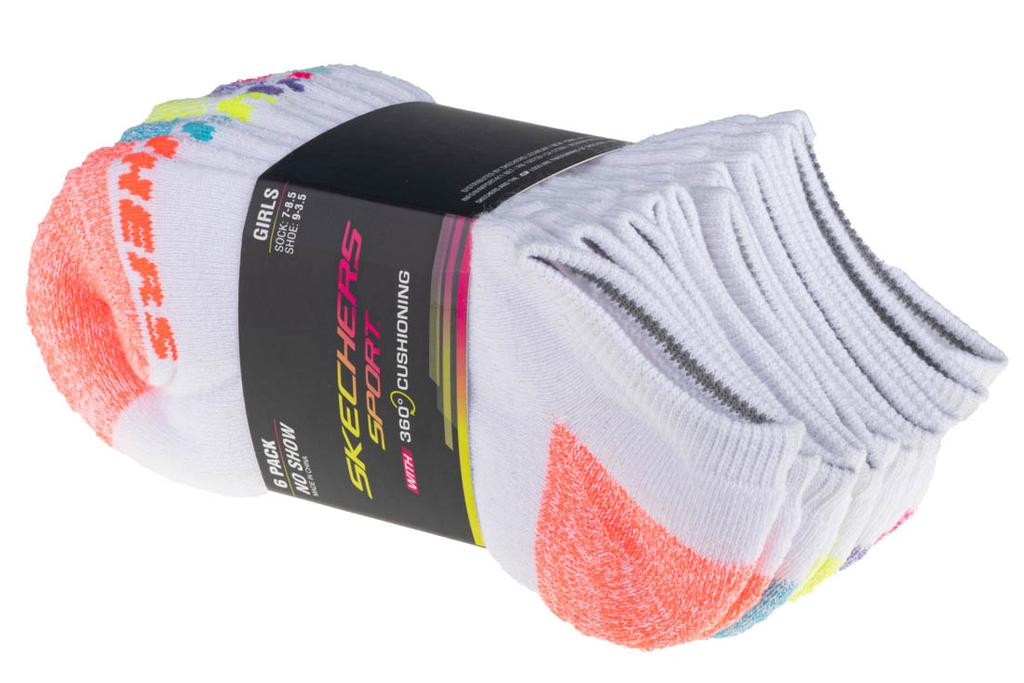 Skechers 6pk Girls Full Terry No Show Med, for Girl white Socks