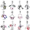 100% Ασήμι Στερλίνας 925 Punk Κιθάρα Σαξόφωνο Μουσικά Μενταγιόν Χάντρες FitNew Πρωτότυπα Βραχιόλια Κολιέ Καλό DIY Κοσμήματα Δώρο