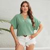 Γυναικείο Καλοκαιρινό Πουκάμισο Μεγάλο Μέγεθος Πράσινο V-Neck Φρέσκο Μοντέρνο Κοντομάνικο Τοπ