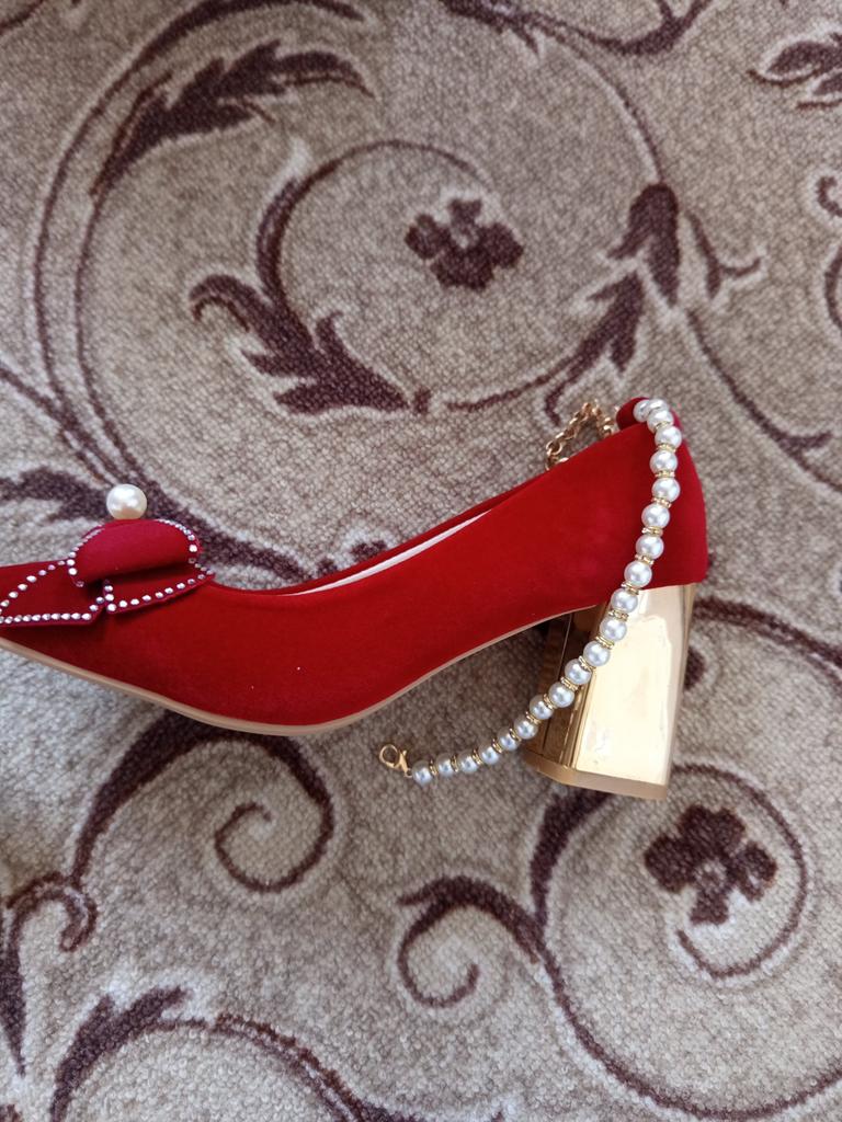 Ανοιξιάτικα και φθινοπωρινά φλις γαλλικά μυτερά χοντρά τακούνια φιόγκο Ψηλοτάκουνα κόκκινα παπούτσια γάμου