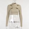 Y2K Hollow Off Shoulder Bottom Γυναικείο κοντό μπλουζάκι με ανοιχτό αφαλό Slim Fit Fake Two Piece Top