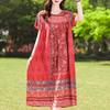 Μεγάλο μέγεθος Φαρδύ Vintage Print Μακρύ Φόρεμα για Γυναικεία Casual κοντομάνικα καλοκαιρινά γυναικεία φορέματα