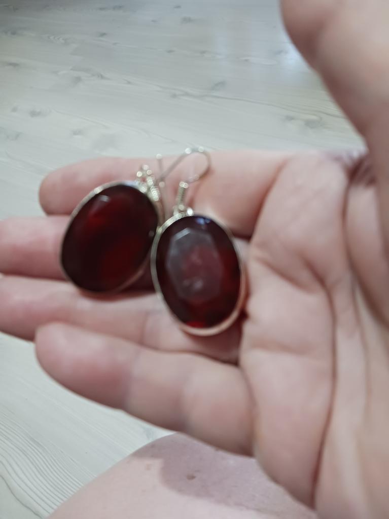 Φυσικός Μοζαμβικιανός Γρανάτης πολύτιμος λίθος 925 Στερλινγκ Ασήμι Σκουλαρίκι 1.97" w2E06