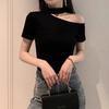 Summer Casual Round Necked Off Shoulder Slim Fit Crop Top Women's Chic Short Sleeve T-Shirt Elastic Waist Plus Size Crop Top Commuter Crop Top