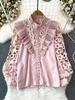 Γυναικεία γυναικεία μπλούζα σε στυλ vintage δικαστήριο με μακρυά μανίκια με φαναράκια πουκάμισα γυναικεία μπλούζα