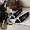 Γαλλικά Μπορντό Παπούτσια Παράνυμφου με Μεσαίο Τακούνι Γυναικεία Κορεατική Έκδοση Φιόγκος Πέρλα Ψηλοτάκουνα Γυναικεία Μυτερά Λεπτά Τακούνια