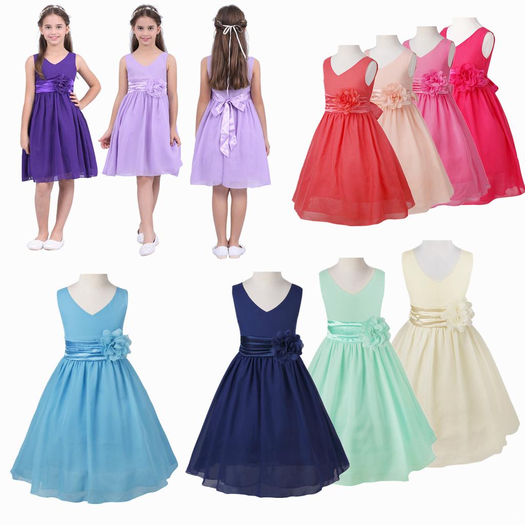 Παιδικά κορίτσια σιφόν αμάνικο V-λαιμόκοψη γάμος παράνυμφος λουλούδι κορίτσι φόρεμα Παιδικό πάρτι γενεθλίων βραδινό χορό