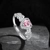 Γεωμετρικό Δαχτυλίδι Καρδιάς από Ασήμι 925 με Ροζ Ζιργκόν, Επιχρυσωμένο με Λευκό Χρυσό, Δαχτυλίδι Μόδας Καρδιάς