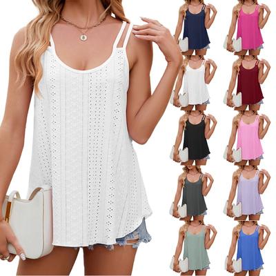 Γυναικεία Σέξι Πλεκτή Καμισόλα με Ανοίγματα Μοντέρνα Τοπ Τανκ Καλοκαιρινά με Λεπτές Τιράντες Κασουάλ Αμάνικα Μπλουζάκια Γιλέκο