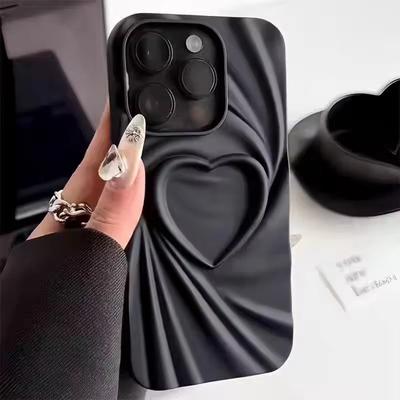 3D Πλισέ Χαριτωμένη Θήκη Τηλεφώνου με Καρδιά για iPhone 15 14 13 11 12 Pro Max Μεταλλικό Χρώμα Αναδιπλούμενο Μαλακό Κάλυμμα Τηλεφώνου από Σιλικόνη Θήκη Capa