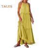 Αυτό το γυναικείο φόρεμα διαθέτει casual και απλό σχεδιασμό, προσφέροντας δωρεάν και άνετη εφαρμογή. Το αμάνικο μακριά φόρεμα με τους ώμους είναι διακοσμημένο με ένα φαρδύ βολάν που καλύπτει κομψά τη σάρκα, δημιουργώντας ένα αποτέλεσμα αδυνατίσματος. Ο σχεδιασμός χωρίς πλάτη προσθέτει μια πινελιά κομψότητας στη συνολική εμφάνιση, καθιστώντας το ιδανικό για διάφορες περιστάσεις. Αγκαλιάστε το στυλ του καλοκαιρινού θέρετρου με αυτό το αμάνικο μακρύ φόρεμα με βολάν.