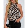 Γυναικείο καπίστρι με λεοπάρ στάμπα εξώπλατο σέξι τοπ σατέν μεταξωτό αμάνικο φανελάκι Μπλούζες μπλούζα