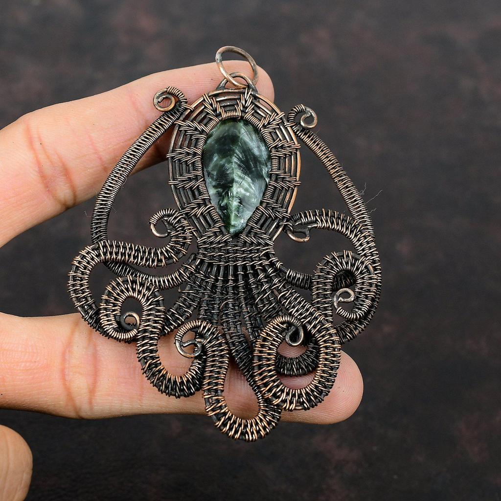 Κρεμαστό Σεραφινίτη Κρεμαστό τυλιγμένο με χάλκινο σύρμα Κοσμήματα Σεραφινίτη Κρεμαστό πολύτιμου λίθου Χειροποίητα χάλκινα κοσμήματα Κρεμαστό χταποδιού Δώρο για γυναίκες
