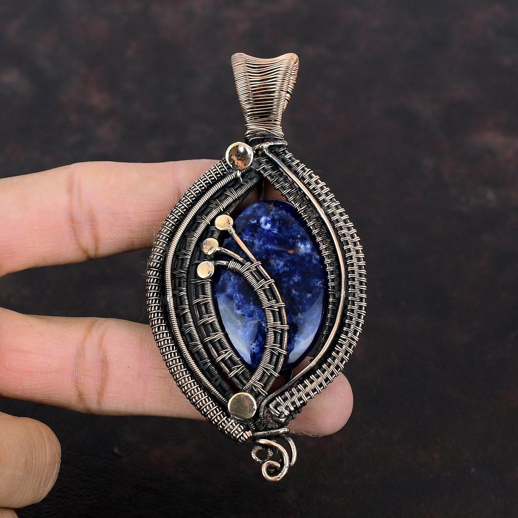 Sodalite Pendant Copper Wire Wrapped Pendant Gemstone Pendant Handmade Jewelry Unique Style Pendant Engagement Gift Beautiful Copper Jewelry