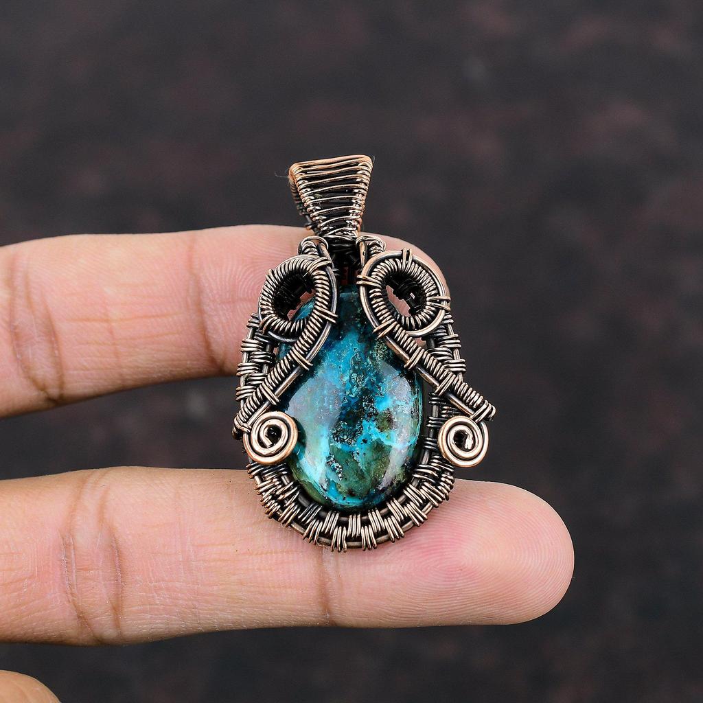 Chrysocolla Pendant Copper Wire Wrapped Pendant Handmade Pendant Copper Jewelry Genuine Gemstone Pendant Gift For Mother Chrysocolla Jewelry
