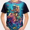 Δημιουργικό T-shirt Cartoon Astronaut Print Boys, Casual ελαφρύ και άνετο κοντομάνικο μπλουζάκι, καλοκαιρινά παιδικά ρούχα