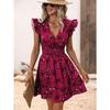 Μόδα φλοράλ με στάμπα καλοκαιρινό σέξι φόρεμα Γυναικεία Κομψά ιπτάμενα μανίκια κοντά φορέματα με λαιμόκοψη V-λαιμόκοψη Casual ψηλόμεση λεπτή εφαρμογή σε γραμμή Α Φαρδύ γυναικείο φόρεμα