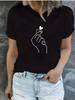 Fashion Women Simple Fingers Compared to Heart Print T Shirt Funny Casual O-neck Short Sleeves T-shirt Summer Female Tee Shirt