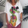 Ρούχα Γυναικεία με Λαιμόκοψη V Oversized Ρούχα Γυναικεία Κοντομάνικα Καλοκαίρι Ρετρό Μπλουζάκι Μόδες Βιολιά Μπλουζάκι με Εκτύπωση Streetwear