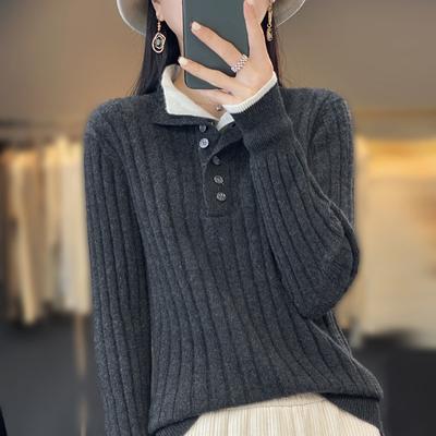 Φθινόπωρο Χειμώνας Αδυνατιστικό Γυναικείο Καθημερινό Πουλόβερ με Περιλαίμιο που Γυρίζει Κασμιρένιο Πουλόβερ Μάλλινο Πλεκτό Ρούχο Τοπ Διπλό Περιλαίμιο Φαρδύ Πουλόβερ