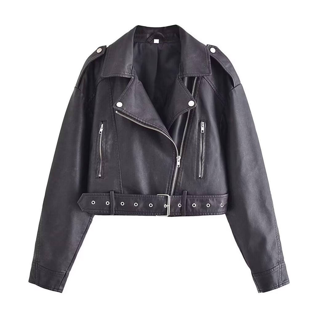 Γυναικείο Δερμάτινο Μπουφάν από Συνθετικό Δέρμα PU Casual Γυναικείο Μπουφάν με Πέτο και Φερμουάρ Κοντό Δερμάτινο Μπουφάν Μοτοσικλέτας High Street