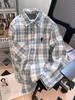 Κοριτσίστικο Κόκκινο Καρό Πουκάμισο Αμερικάνικο Καλοκαίρι Κέντημα Γραμμάτων Φαρδιές Μπλούζες Vintage Μακρυμάνικο Σχέδιο Αστικά Oversized Τοπ