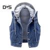 Τζιν παλτό με φερμουάρ, φθινοπωρινή άνοιξη, μονόπετο, αμάνικο, κουκούλα, τσέπες, φαρδύ μπουφάν, κορδόνι, κοντό γιλέκο για καθημερινή χρήση
