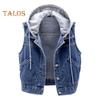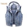 Τζιν παλτό με φερμουάρ, φθινοπωρινή άνοιξη, μονόπετο, αμάνικο, κουκούλα, τσέπες, φαρδύ μπουφάν, κορδόνι, κοντό γιλέκο για καθημερινή χρήση