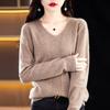 Ανοιξιάτικο και Φθινόπωρο Γυναικείο πλεκτό πουλόβερ Μακρυμάνικο πλεκτό πουλόβερ με λαιμόκοψη σε σχήμα V Πλεκτό πουλόβερ μονόχρωμο πουλόβερ Λεπτό τοπ Απαλό πλεκτό πουκάμισο με πάτο