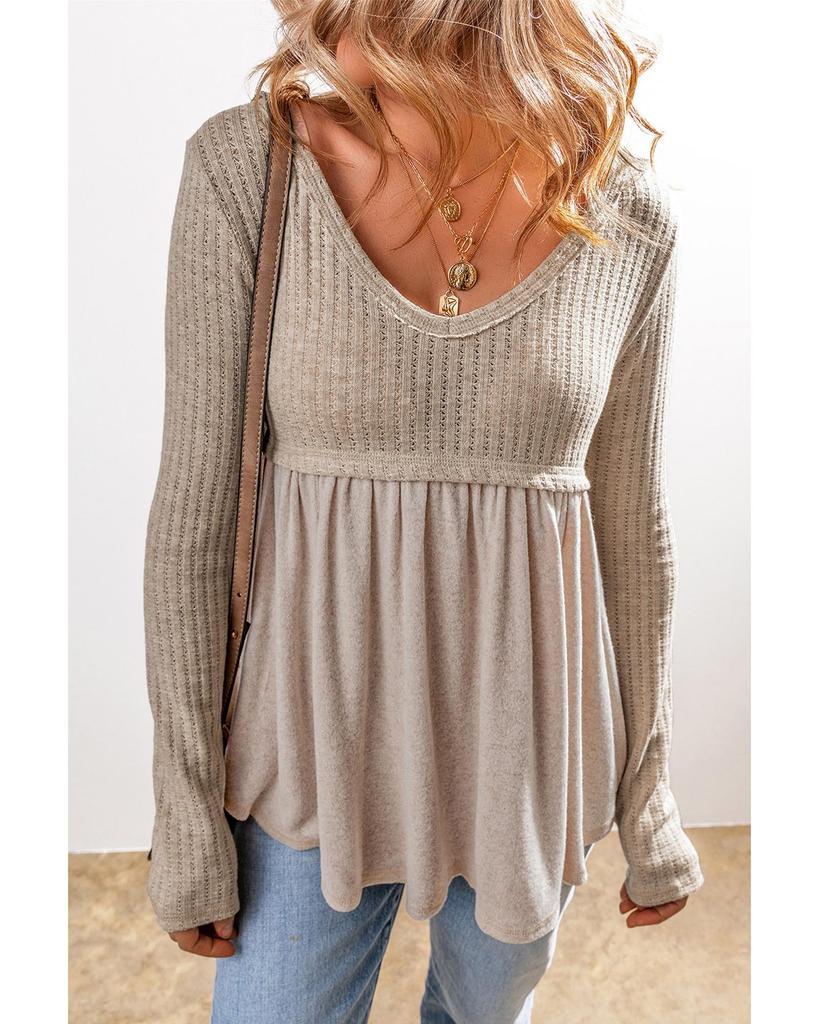 Azura Exchange Smoke Gray Textured Long Sleeve V Neck Babydoll Top