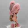 Real Fur Hat For Winter Women'S Hat Natural Fox Fur Russian Ushanka Cap Thick Warm Ears Fashion Bomber Cap Girls Fur Hat Elastic