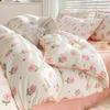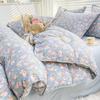 Κρεβάτι με διπλό νήμα Σετ τεσσάρων τεμαχίων Floral τριμμένο παπλωματοθήκη Πλυμένο βαμβακερό σεντόνι κοιτώνα Κρεβάτι τριών τεμαχίων