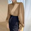 VONDA Γυναικείες κομψές μονόχρωμες ριγέ μακρυμάνικο μπλούζες με ζιβάγκο