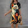 Women Casual Dress Summer Coal Ball Cat Print Dresses For Women O-neck Short Sleeve Dress Plus Size