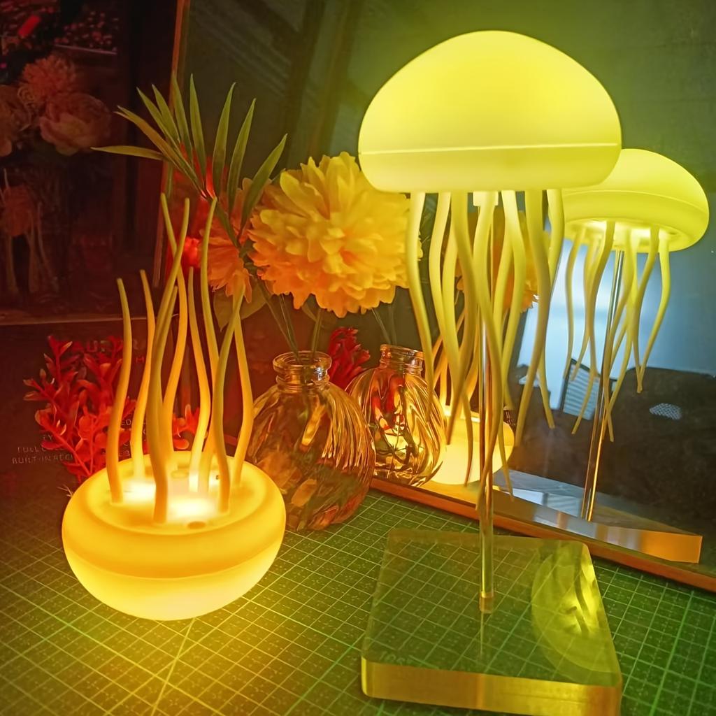 Modern Jellyfish Desk Lamps, USB Powered Adjustable Color Changing LED Night Light with PCustom olished Plastic Base, Switch Control Seascapes