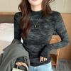 Half-neck Camouflage Base Layer for Women with a New Slim T-shirt Long Sleeve Top for Autumn and Winter