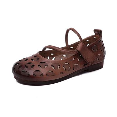 Women's Hollow Flat Shoes Platform Women Shoe 2024 Retro Hole Sandals Genuine Leather Shoes for Female Zapatos De Mujer