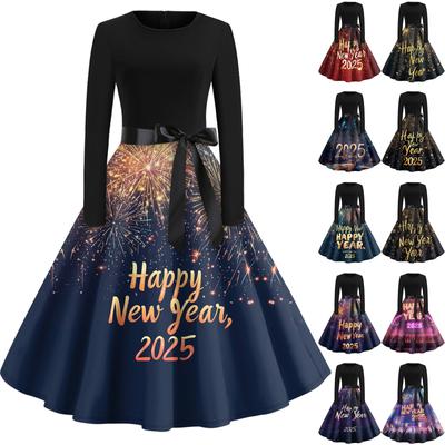 Γυναικείο Vintage Κλασικό Φόρεμα Μακρυμάνικο με Πρίιτ Στρογγυλή Λαιμόκοψη Φόρεμα Swing