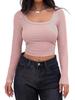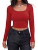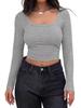 Νέο γυναικείο μπλουζάκι με μακρυμάνικο τετράγωνο λαιμό ευρωπαϊκή και αμερικανική λεπτή εφαρμογή 2024