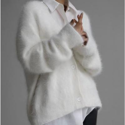Mink Velvet V-neck Knitted Sweater Women's Autumn and Winter Loose Solid Color Cardigan Women's Jacket
