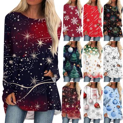 Γυναικεία Casual Μόδα Χριστουγεννιάτικη Εκτύπωση Μακρυμάνικη Τοπ Μπλούζα Μεσαίου Μήκους