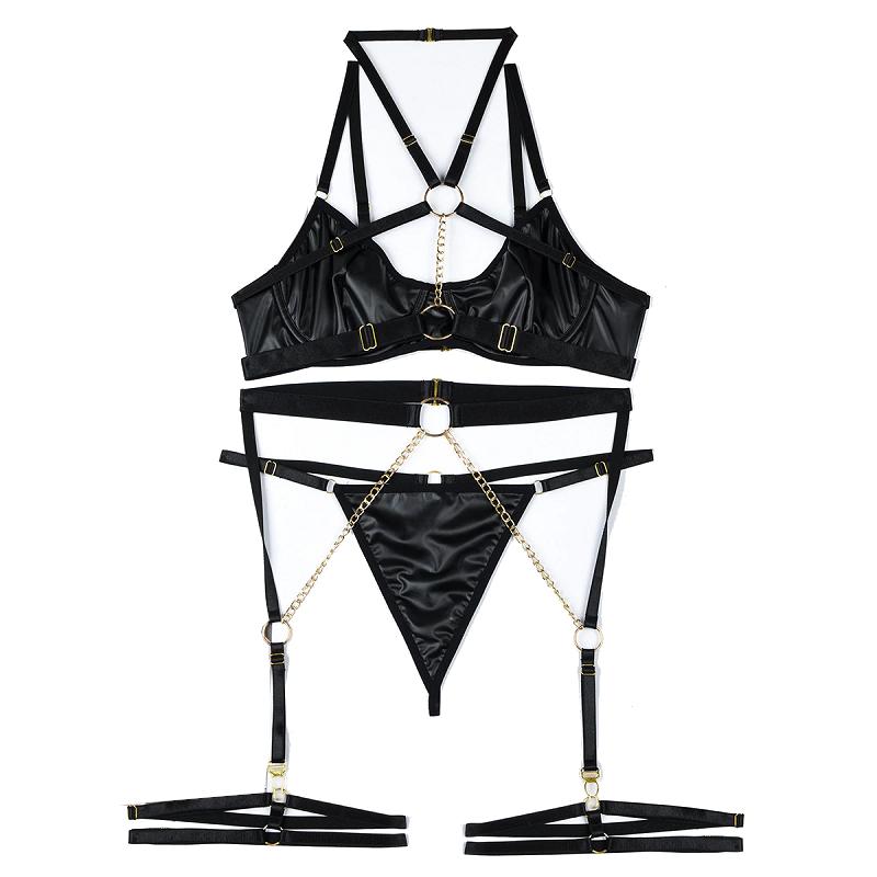 1 x PVC Faux Latex Strappy Chain Bondage Fetish Lingerie Women Black Blue Light Pink